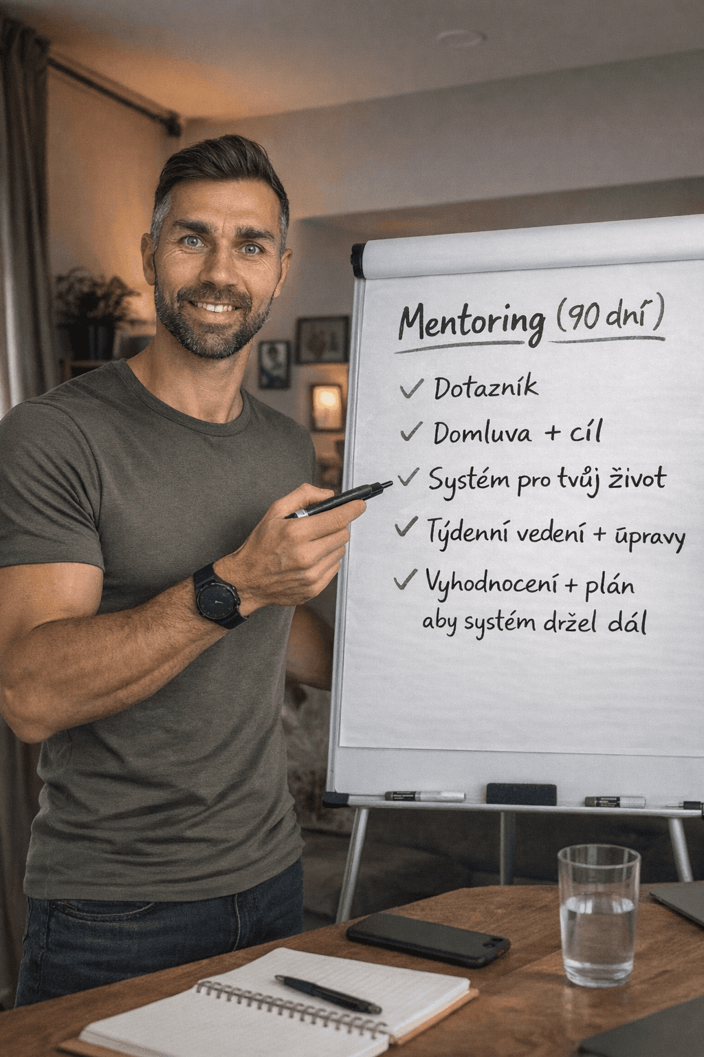 Individuální provázení pro muže, kteří chtějí znovu cítit sílu a kontrolu nad svým životem. Za 90 dní postavíme systém, který funguje v reálným životě: práce, rodina, restaurace, víkendy.